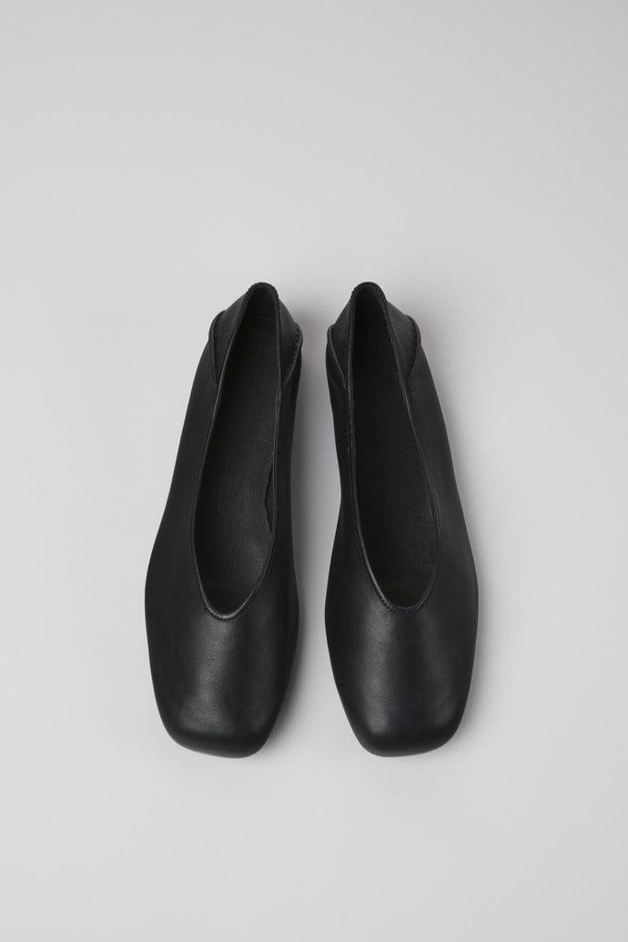 Black calfskin leather ballerinas for women with OrthoLite® Recycled™ footbeds and TPU outsoles (20% recycled).
