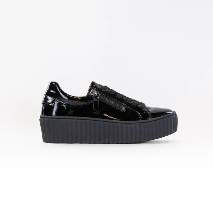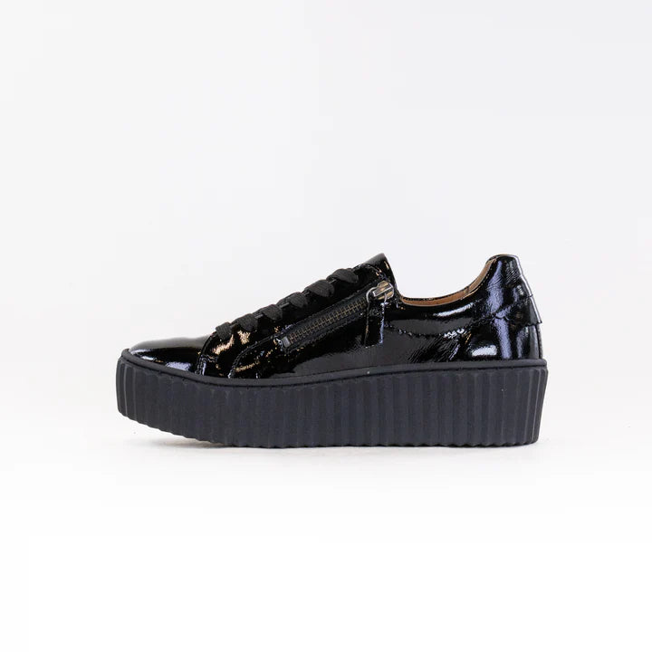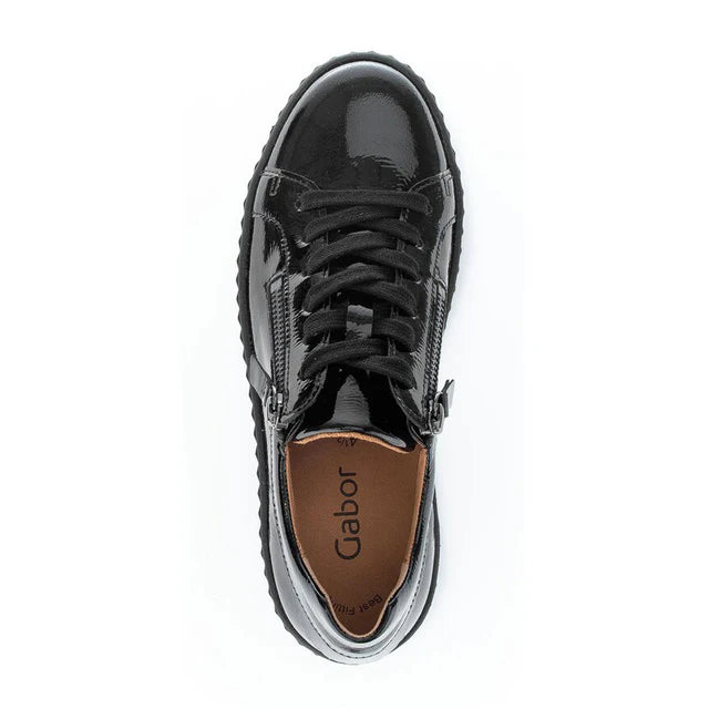 Gabor Double Zip Platform Sneakers Black Patent